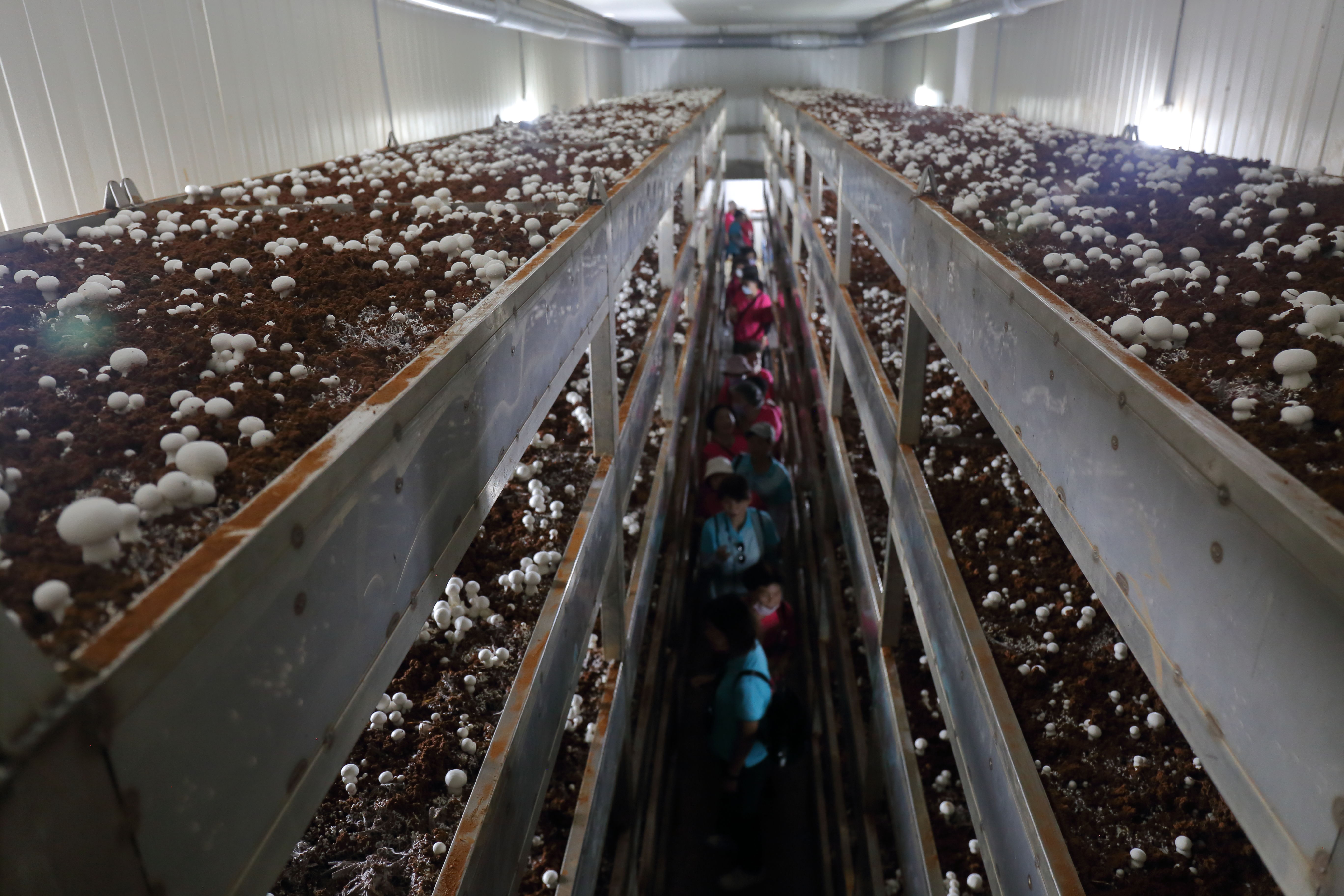 賓果遊戲的問與答引起大家對栽培的好奇心,元立再帶來賓到菇舍裡面尋找解答,觀察洋菇的生長過程,最後示範烹飪生鮮洋菇與品嘗新鮮的洋菇。