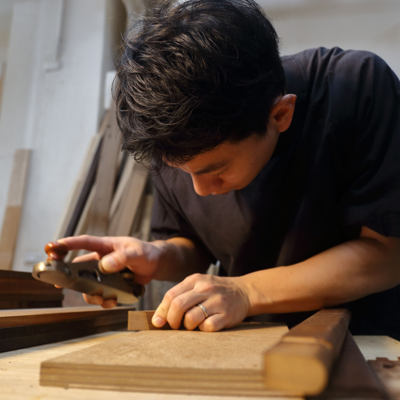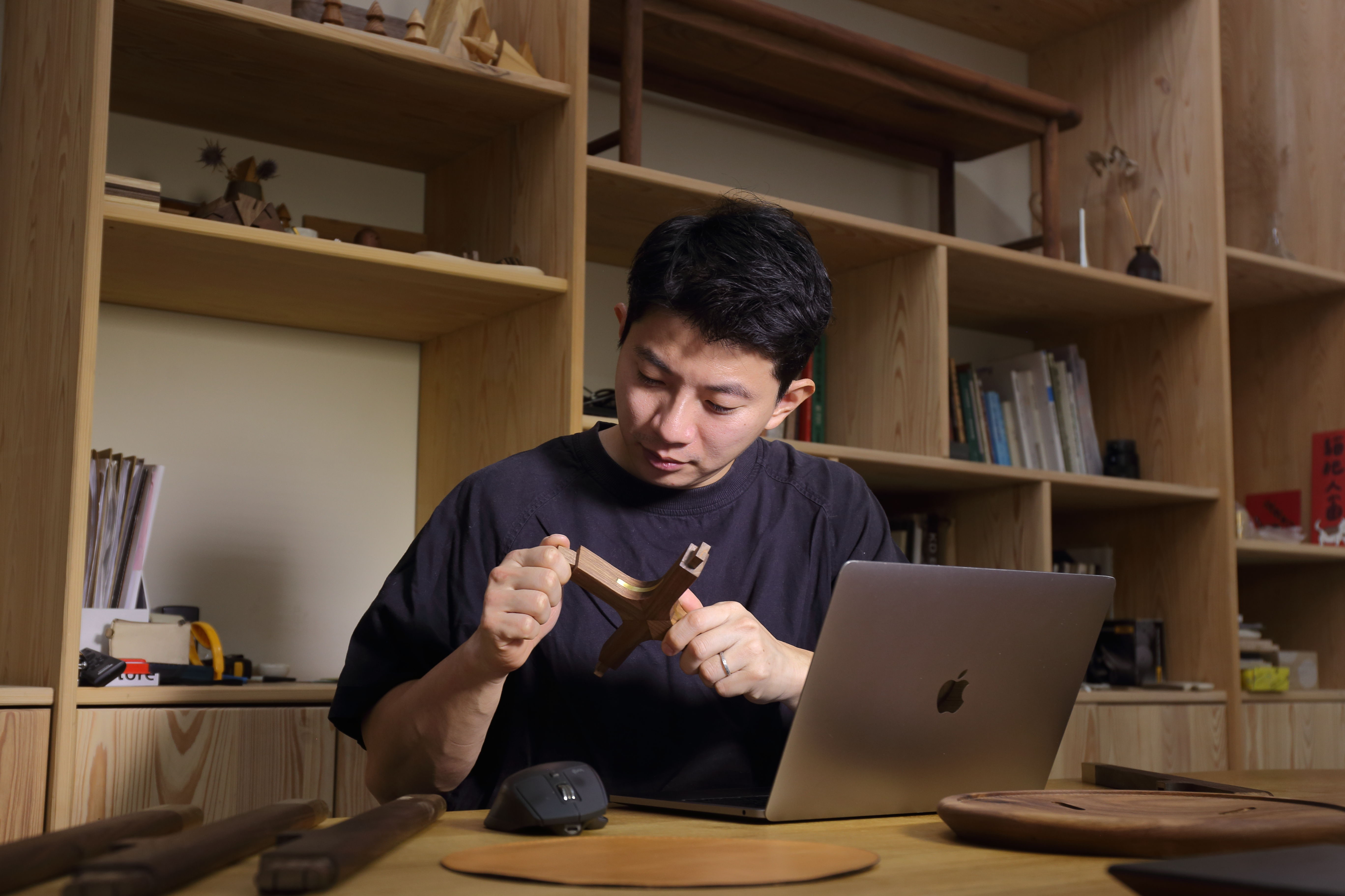 進到柴屋,就聞到濃濃的木頭味,宸豪說家族從事實木百葉窗簾製作,很習慣成長過程中家裡都是木頭的環境,對木頭的感情是從小累積,進入家具設計領域則自草屯工藝中心的培訓課程開始。