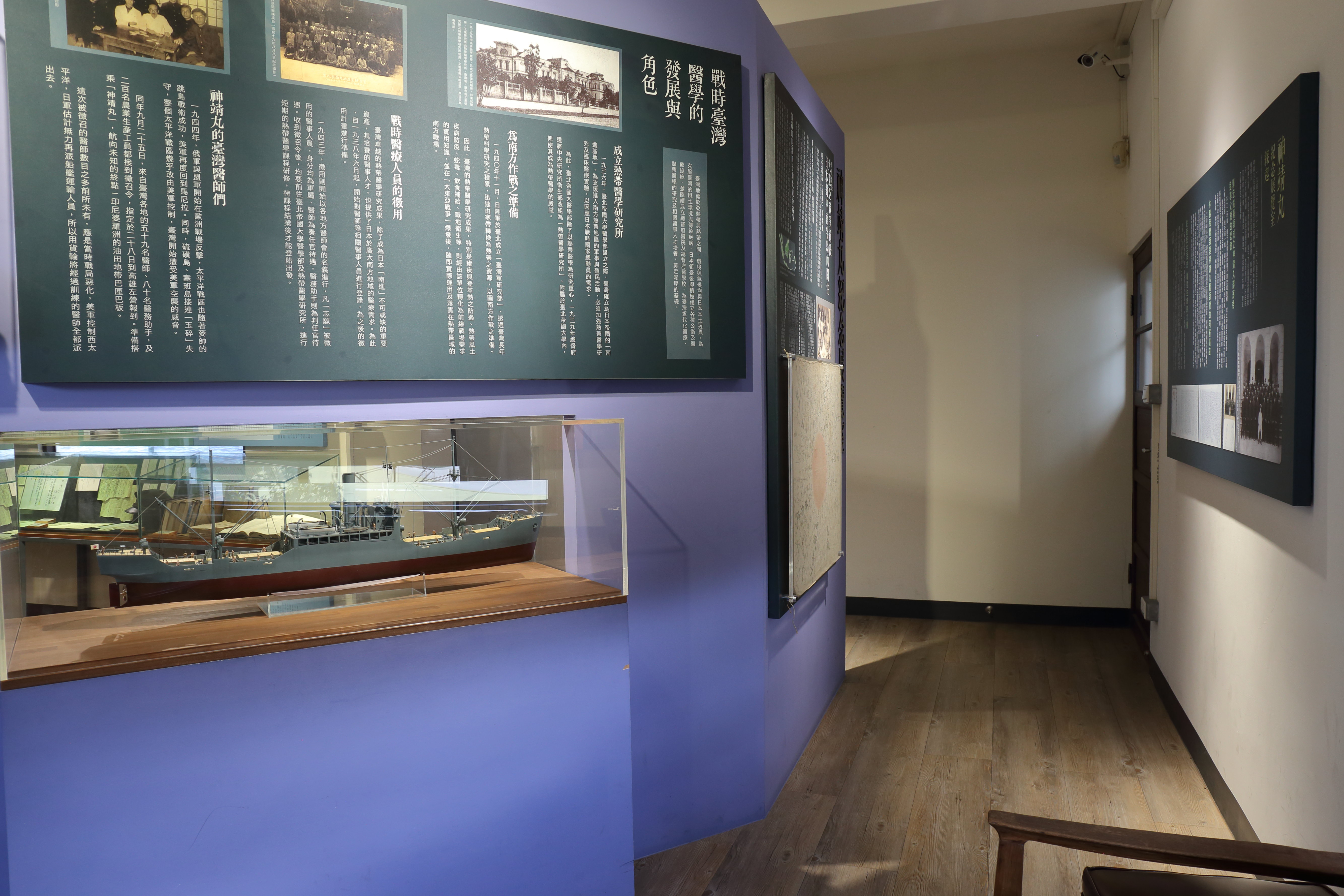 霧峰‧民生‧故事館二樓常設「神靖丸紀念展覽室」,展示與林鵬飛醫師同時代臺灣醫師被日軍徵召到南洋的歷史故事,細心考據、製作的神靖丸運輸艦模型,遺族珍藏的書信、文物、相關文獻,以神靖丸的故事敘說二次大戰中被遺忘的一頁臺灣歷史。