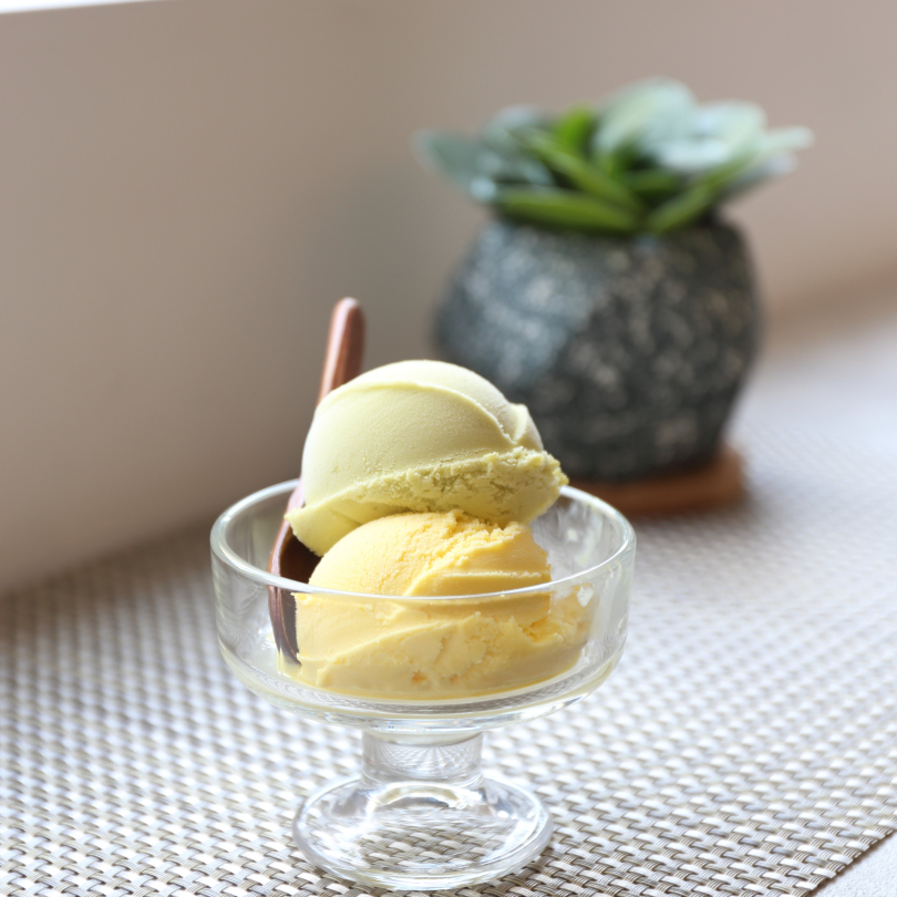 牛奶、巧克力、酪梨…店內的冰淇淋雖然僅有簡單幾種,但卻有著像酪梨、火龍果這種外面少見的特別口味,「融」的老闆談到,自己過去曾學習過製作台式叭哺,但想跳脫出傳統冰店的設定,故就自己專研義式冰淇淋的作法。義式冰淇淋講求真材實料,不加一滴水,由此得到靈感的老版,便自己將這份技術加以改良,創造出不加入明膠,不加任何一滴酒,讓蛋奶素食者也能安心享用的健康素食冰淇淋。