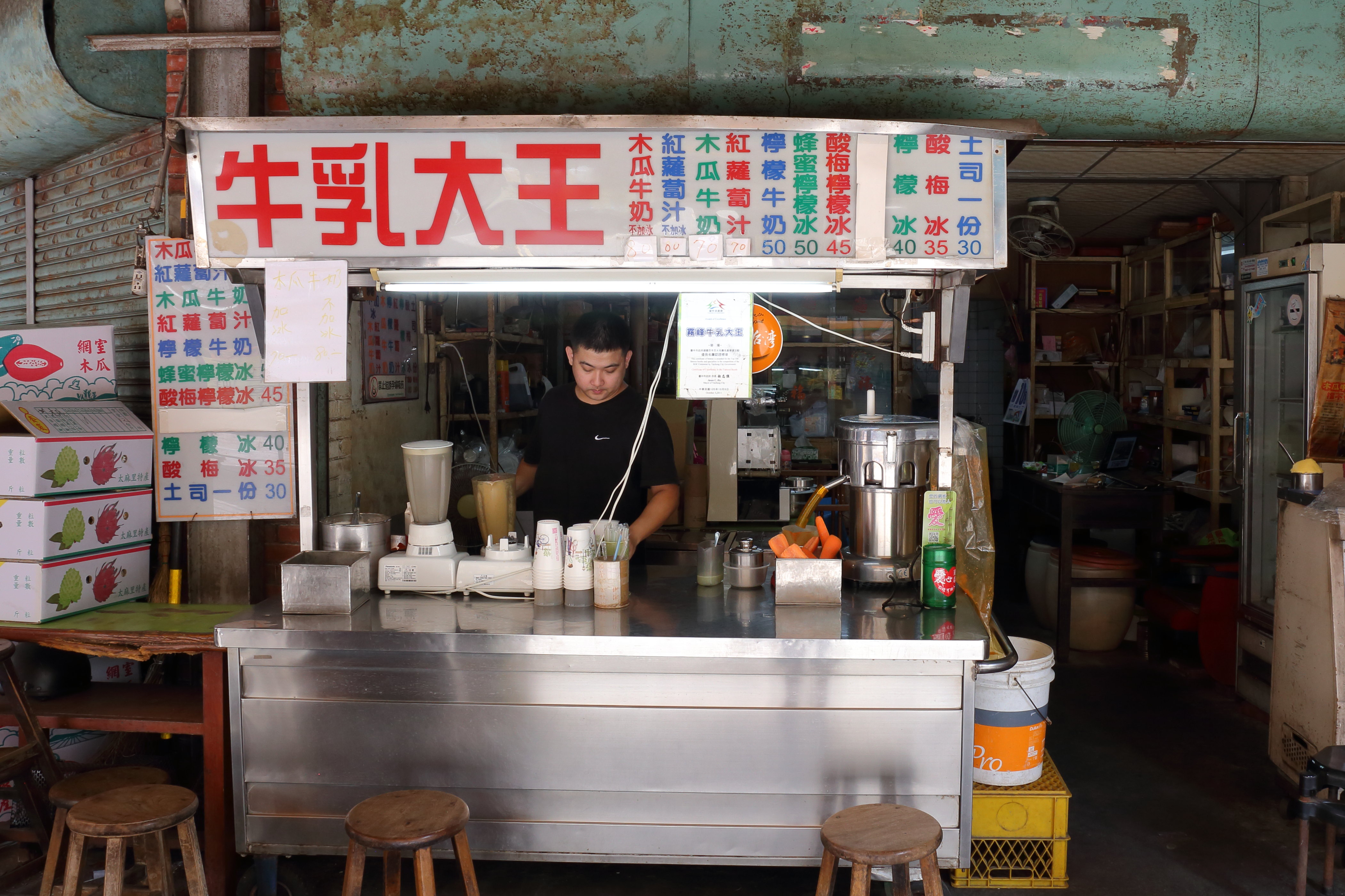 位於民主街和民權路口的木瓜牛乳大王,是 1960年迄今的老店,學機械的老闆已經是第三代,個性追求自由,有自己的理想,於是返鄉接手家族事業,一杯飲料配一份烤土司,是老霧峰人習以為常的下午茶或是宵夜點心,這份霧峰故鄉老味道的餘韻,正是曾在外流浪的年輕老闆想延續的心情。