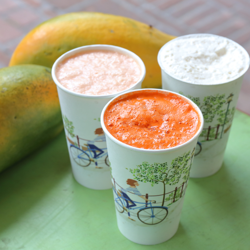 除了傳統的木瓜牛乳,特選的南部木瓜不加一滴水,以上選的鮮奶打成;招牌飲料還大推獨家的檸檬牛奶、紅蘿蔔汁和酸梅冰。大家都會質疑檸檬怎麼可以加牛奶,不是會起化學變化結塊嗎?老店獨有的做法就是能讓牛奶與檸檬汁完美的結合,滋味迷人。紅蘿蔔汁是很多食客的熱愛,新鮮的紅蘿蔔現榨後,加入檸檬汁去除紅蘿蔔特有的生草味,並以蜂蜜增加甜度,不只好喝,對手機不離手的人還護眼。